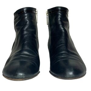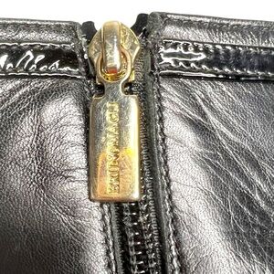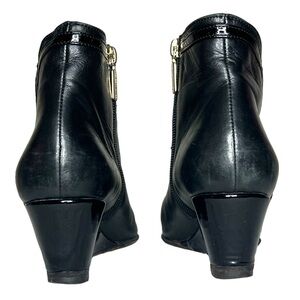 Bruno Magli Leather Wedge Ankle Booties Black with Patent Leather Trim Size EU37