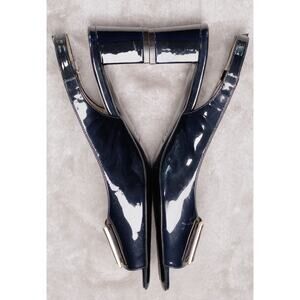 Bruno Magli Navy Patent Leather Gold Buckle Slingback Heels Womens US 9 EU 40