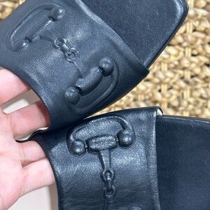 Black soft leather slides