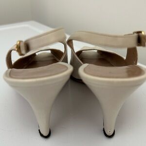 Bruno Magli Leather peep toe slingback heels, ivory cream, size 8 AAAA extra narrow