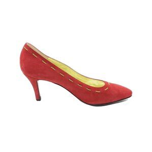 Bruno Magli Red Suede Gold Trim Pointed Toe Leather Heel Pumps Womens 9.5 AAA