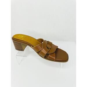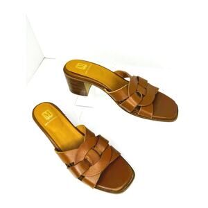 Bruno Magli Leather in Rich Cognac Block Heel Slide Sandals – Size 40