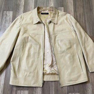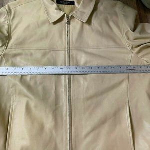 Bruno Magli Womens Ivory Real Leather Collared Full Zip Bomber Jacket Size 42