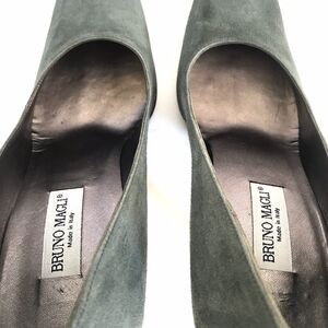 Bruno Magli Size US 6 B Women’s Square Toes Suede Pumps Heels Dark Olive Green.