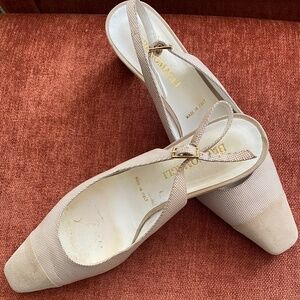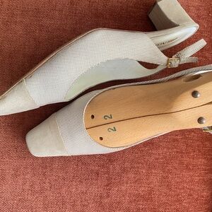 Brune Magli 2" slingback pump. Suede toe cap and heel with small beige checkered pattern. Slightly worn. Very comfortable. Can no longer wear as shoe size changed.
