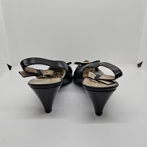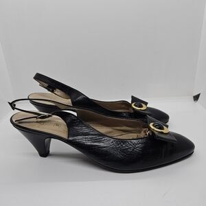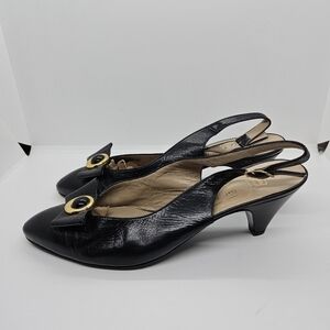 Bruno Magli vintage black leather slingback kitten heels with bow detail 7.5B