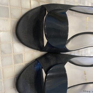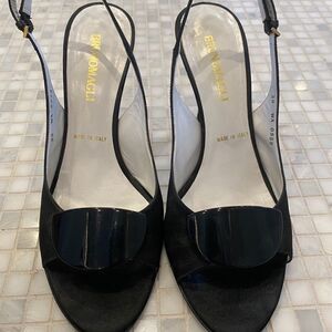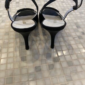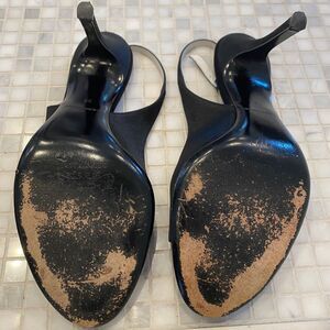 Bruno Magli Black sling back high heels. Satin material with detailing on front. Made in Italy. Please note size listed is 39 which is size 9.