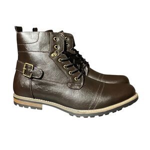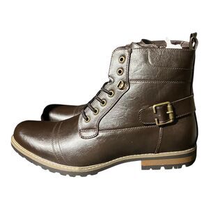 Bruno Marc Boots Mens 13 Brown Motorcycle Combat Side Zip Buckle Philly Lace Up Classic Rugged Outdoors Lug Winter Date Night Casual