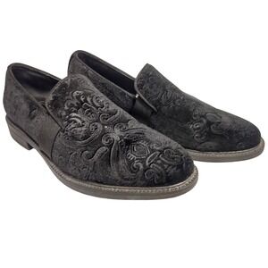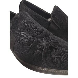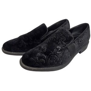 Bruno Marc Mens Black Velvet Floral Loafers Slip On Dress Shoes Size 10