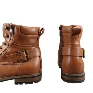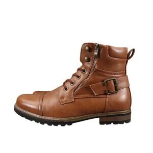 Used Bruno Marc Shoes Mens 6.5 Boots Motorcycle Biker Combat Casual Zip Lace Up Brown
