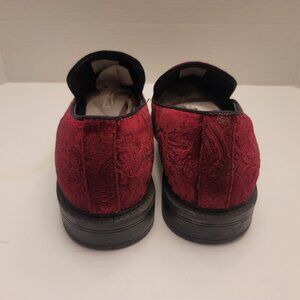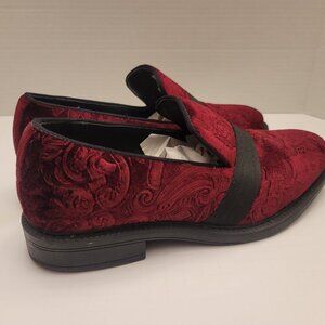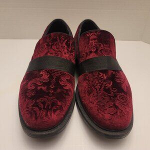 Bruno Marc, men's size 8, burgundy and black. Hard rubber sole. Almost perfect condition. Only worn to the prom. Beautiful velvet like material. Deep colors and textures. Great looking shoe.