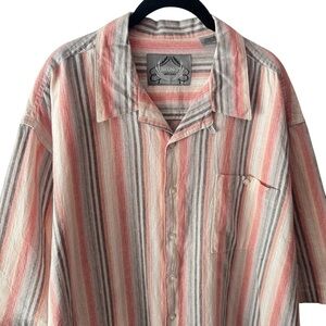 Bruno Orange and Grey Striped Linen Blend Resort Vacation Button Down Men’s 2XLT