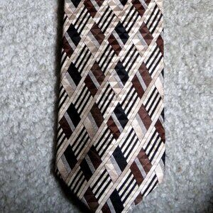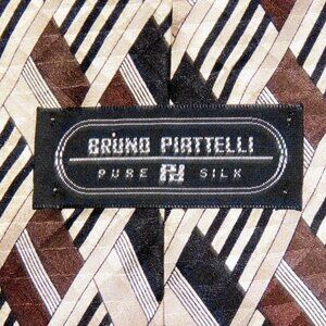 Bruno Piattelli 100% Silk Men's Geometric Print Tie Neutral Shades abt. 55" Long