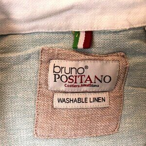 Bruno Positano Mens Button Up Shirt Medium Light Blue Short Sleeve Linen Blend