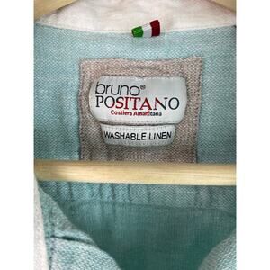 Bruno Positano Size L Aqua Blue Washable Linen Short Sleeve Button Up Shirt