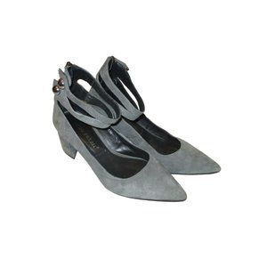 *Bruno Premi Gray Suede Ankle Strap Pointed Toe Pumps