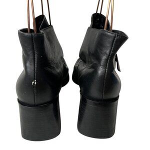 Vintage 90s Bruno Valenti ankle boots, squared moc toe, monk strap with buckle closure, chunky 2.5" block heel, women's 8.5, preowned and shows wear on the soles, scuffing - see photos