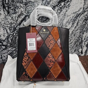 Bruno Magli Damiana small tote black/tan/caramel leather/suede