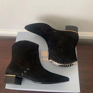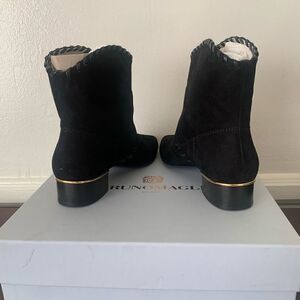 Bruno Magli Marlene Black Suede Western Ankle Bootie NEW $625. 1 1/4" heel. Gold Trim heel accent.