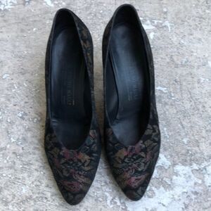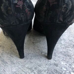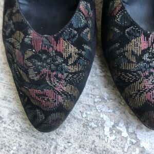 These are like a tapestry. They are not new but they’re still good. Insoles under the heel need to be reglued. Also a little piece of the back.