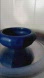 I rescued this bowl from an antique booth where it was being used as a pillar candle holder for a display. Knocked my socks right off. I thought someone had spray painted a Colonial Mat Green piece blue, but it turns out to be a very original satin mat blue with examples listed in the 1920 Brush catalog, sheet W. I found the glaze in Huxford 1978, page 184. The bowl itself is a commonly seen shape (marked 01) found in many of the beautiful art lines of this era. 2.25 inches tall and 4.25 inches across the rim. Notice what looks like shimmering gold paint on the rim and inside the bowl. I almost removed it, but it was such a battle scar of her survival, that I decided to leave it for her future rescue home to decide. I try not to say "rare" but I have seen very few pieces of midnight colored Mat blue Brush Pottery. Heavy bowl, heavily glazed with no chips, flakes, or fissures other than the usual production imperfections.