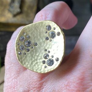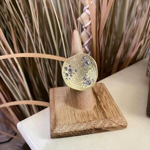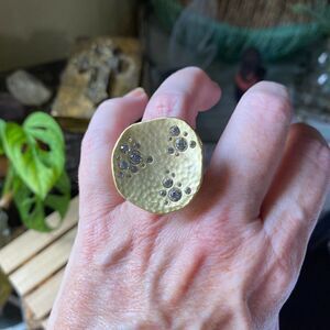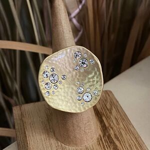 Brushed Brass Gold & Top Crystal Statement Ring Size 8