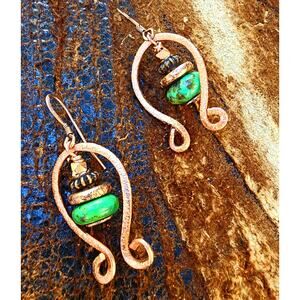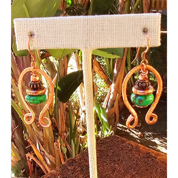 Brushed Copper Green Picture Jasper Artisan Earrings