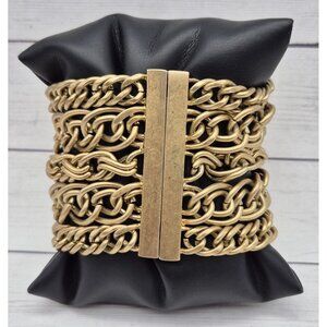 Brushed Gold Tone Multi Mixed Chain Magnetic Clasp 2.5" Wide Statement Bracelet