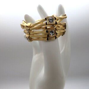 Brushed Gold Tone Stretch Bracelet Six Multi Strand Square Rhinestone Encrusted Preowned