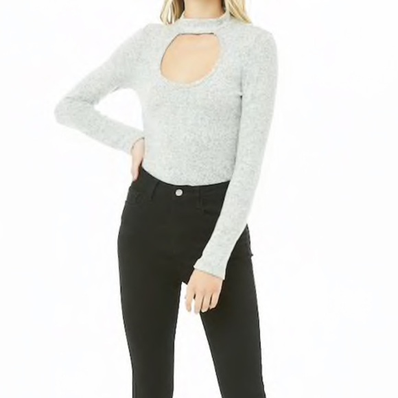 A lightweight brushed knit top featuring a mock neckline with front cutout, long sleeves, and slightly relaxed silhouette. - 77% rayon, 21% polyester, 2% spandex -Hand wash cold