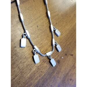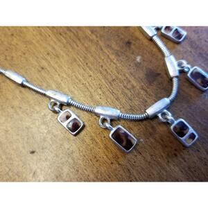 Brushed Silver Metal Dangle Faux Tortoise Shell NECKLACE Vintage Hook Aztec