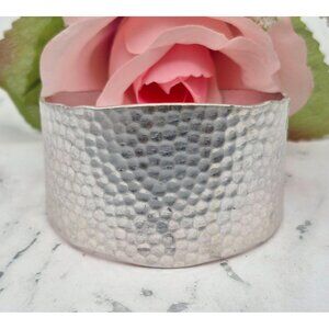 Brushed Silver Tone Hammered Wide Cuff Bracelet Brutalist Statement Piece