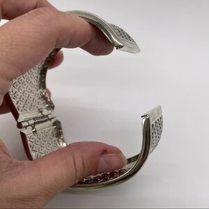 Brushed Silver Tone Wide Clamper Bracelet Hinged Minimalist Brutalist
