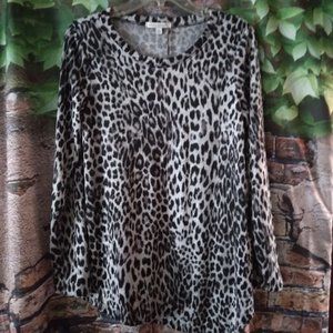 Brushed Soft Knit Assem Hem Animal Print Top