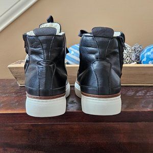 Brusque is a company based in Portugal and they pride themselves in creating Unisex shoes and these high-tops are a great example. Either gender would look great in the supple leather, fleece interior, lace or zippered closure and amazingly clean soles. As close to brand new as you can get.