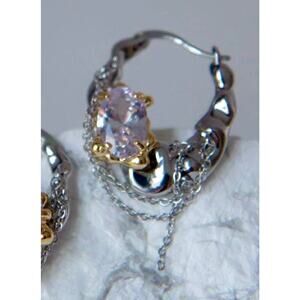 Gorgeous Chunky Molten Metal Hoop Earrings in Crumpled Silver with a Stunning CZ set in a Gold Claw. Brand New, without tags, please see photos for close ups & measurements. As always, if you have any questions, please don't hesitate to ask & THANKS SO MUCH for stopping by #BunnyBlvd !!!