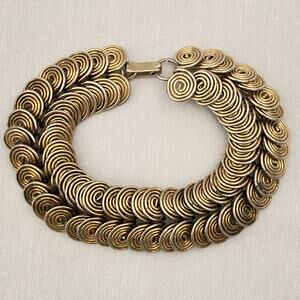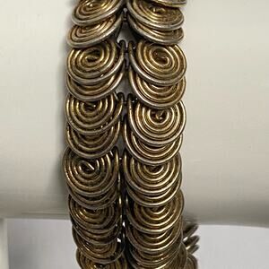 Brutalist Bracelet Bronze Geometric Entwined Wire Circles Fold Over Clasp