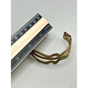 Brutalist Brass Wave Cuff Bracelet Irregular Hollow Handcrafted 70s Jewelry