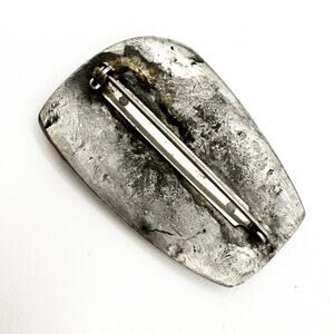 The handcrafted brooch design has a very distinct contrasting patina. The ground is dull and gray and all the high points are much shiny and silver colored. A great example of brutalist jewelry that isn’t too over the top.