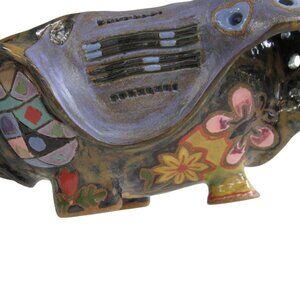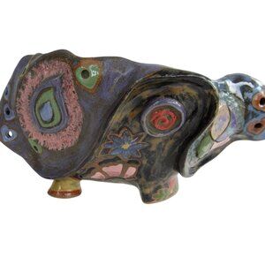 Brutalist Sculpted Clay Art Studio Pottery Glazed Vase Free Form Colorful MCM