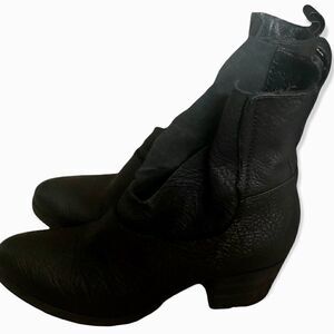 Soft black leather ankle booties. Pull on. Pebbled leather. Lug sole. 2” solid block heel. Made in Italy. The leather is in great condition very little wear on soles. Bryan Blake Size 37.5 = 7