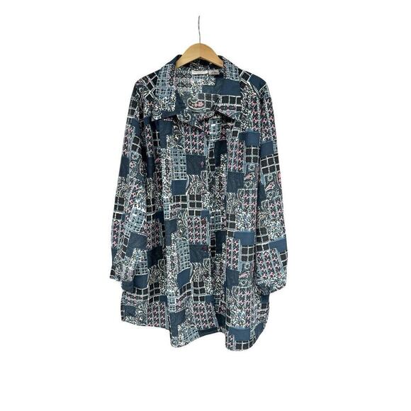 Brylane Woman Multicolor Pattern Button Up Shirt Tunic Womens Plus Size 3XL