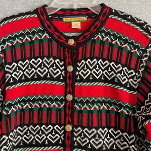Bryn Connelly Vintage Cardigan Sweater Womens Medium All Over Hearts Red Black
