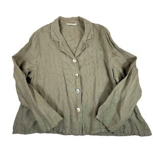 Bryn Walker 100% linen lagen look button top olive sz M