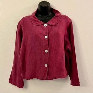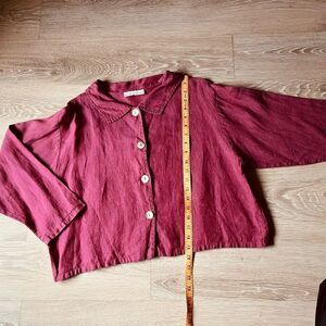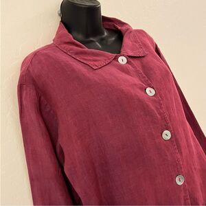 Bryn Walker 100% linen Wine button up Boxy 3/4 Sleeve Drop Shoulders top S