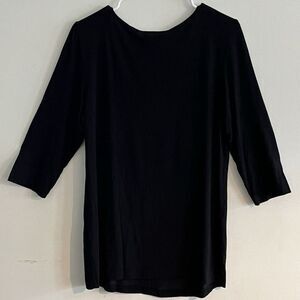 Bryn Walker 3/4 Sleeve Pullover Top Black L Lightweight Minimal Lagenlook Artsy