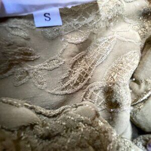 Bryn Walker Button Front Mandarin Collar Textured Floral Blouse Small Green