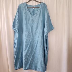 Bryn Walker Dress Womens L Turquo Blue Linen Short Sleeve Made in USA Minimalist