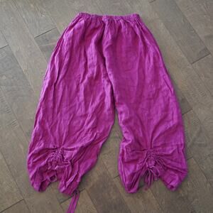 Bryn Walker Elastic Waistband Cinched Hem Linen Pants Pink Womens Size 1X