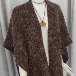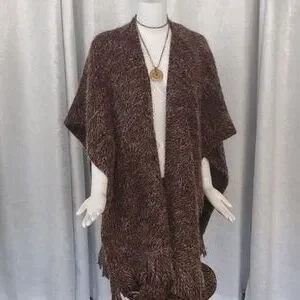 Bryn Walker Fall Poncho Wrap Open Long Fringe Bohemian Sweater Wool Shaggy Coat